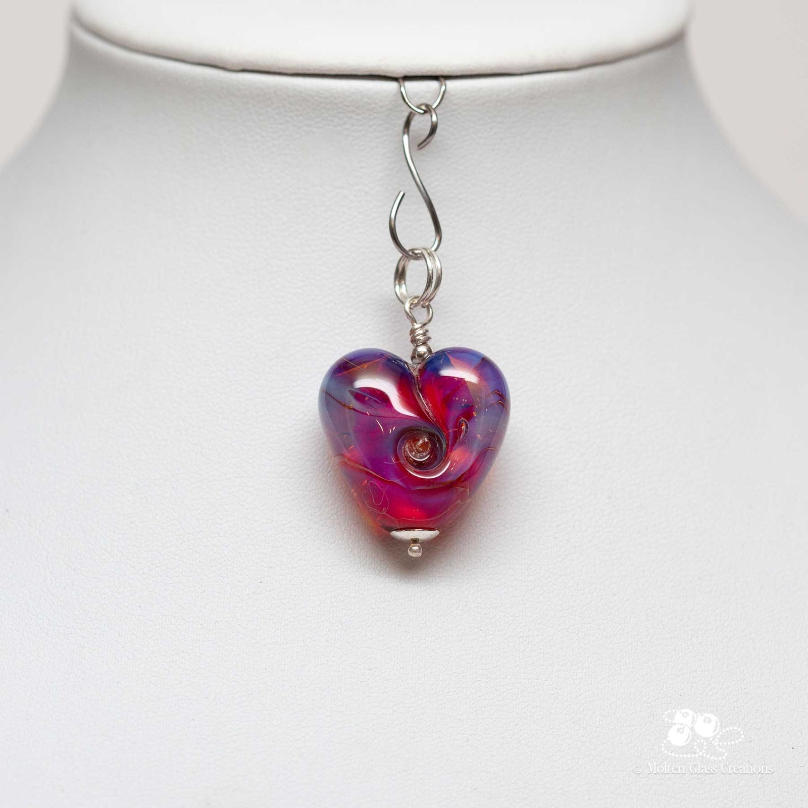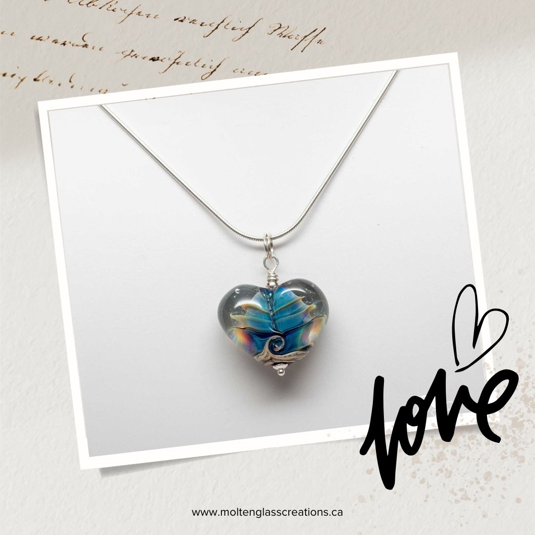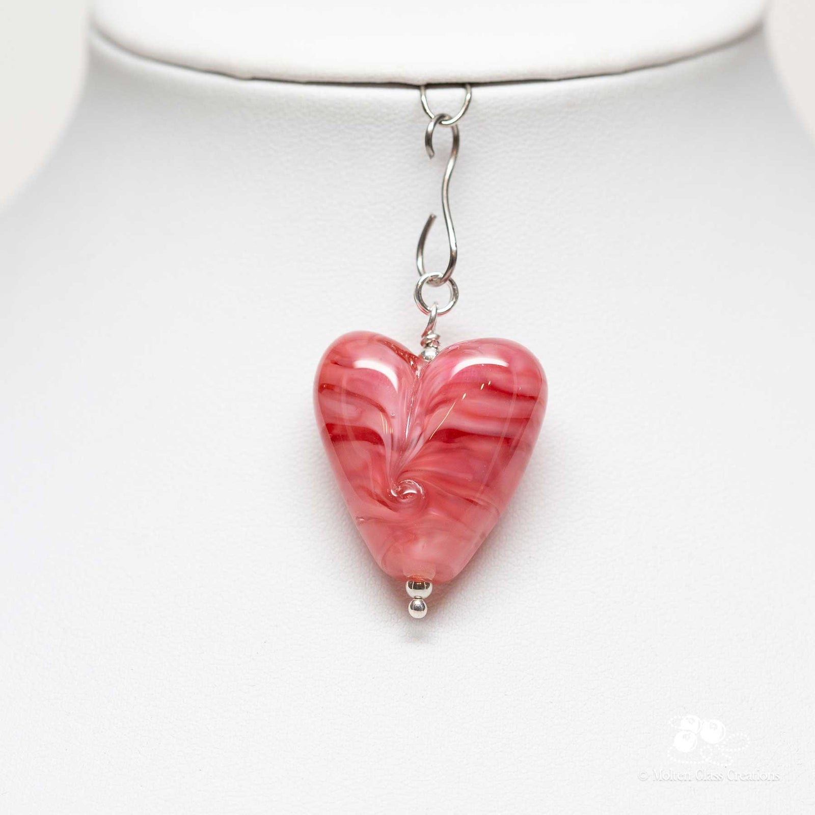 Each heart is truly one of a kind. I layer vibrant glass, add texture and shine, and let each bead become exactly what it wants to be, bold reds, soft pinks, shimmering accents, and everything in between.