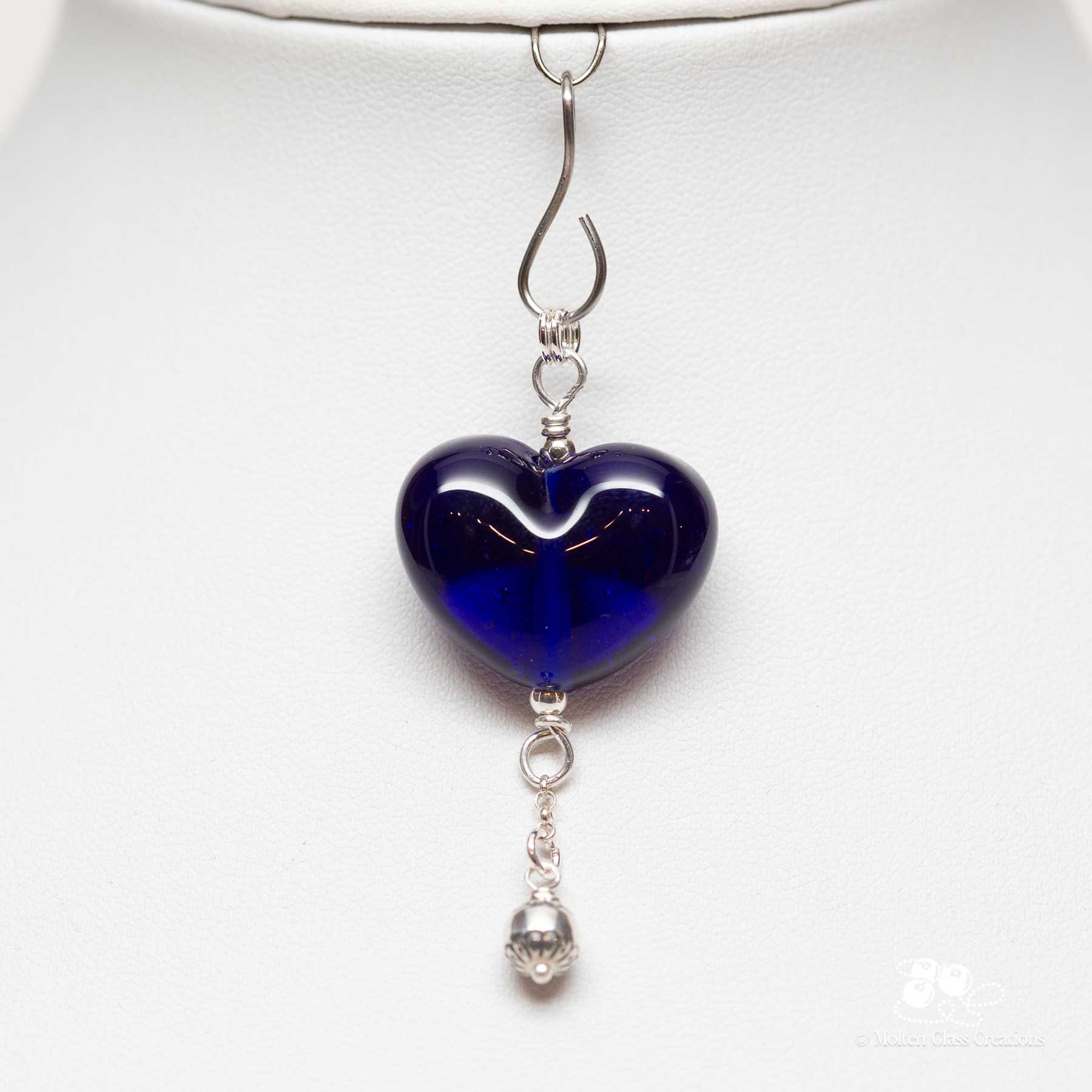 The heart is shaped by hand at the torch and finished with sterling silver wire and findings. A small decorative silver dangle adds subtle movement, giving the pendant a finished yet understated look.