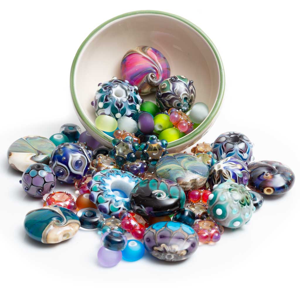 All of my glass beads are made one at a time in my home based studio. They are all annealed in my digitally controlled kiln to ensure strength and durability. Each bead is cleaned by hand and inspected prior to being added to a piece of jewellery or put in my shop for sale.