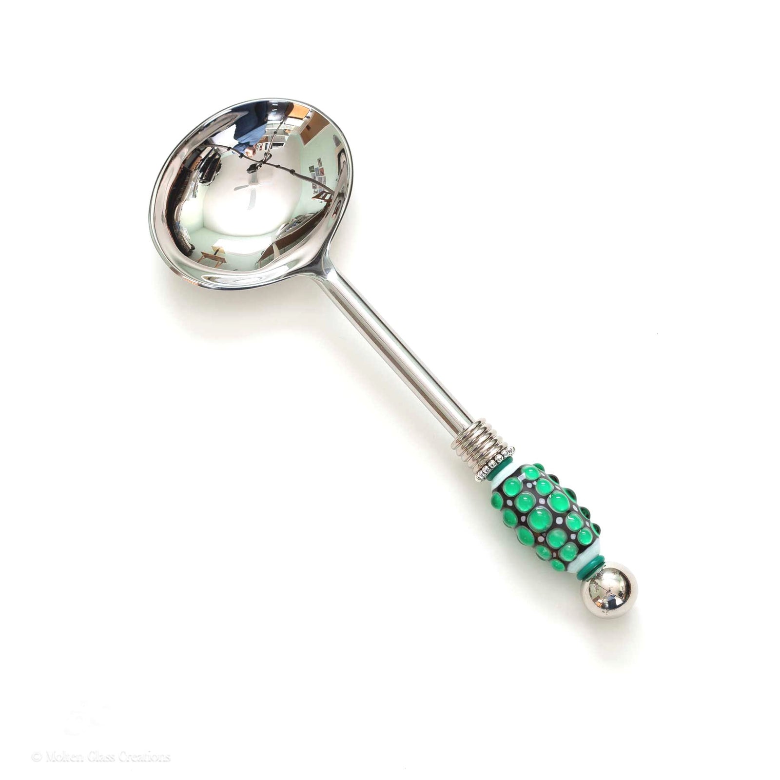 Elegant and colourful range of ladles, spoons, salad serving sets, cake serving sets and knives beaded with magnificent glass beads. The beaded serving ware will make excellent, one-of-a-kind gifts for weddings, bridal showers, hostess gifts, family and friends.